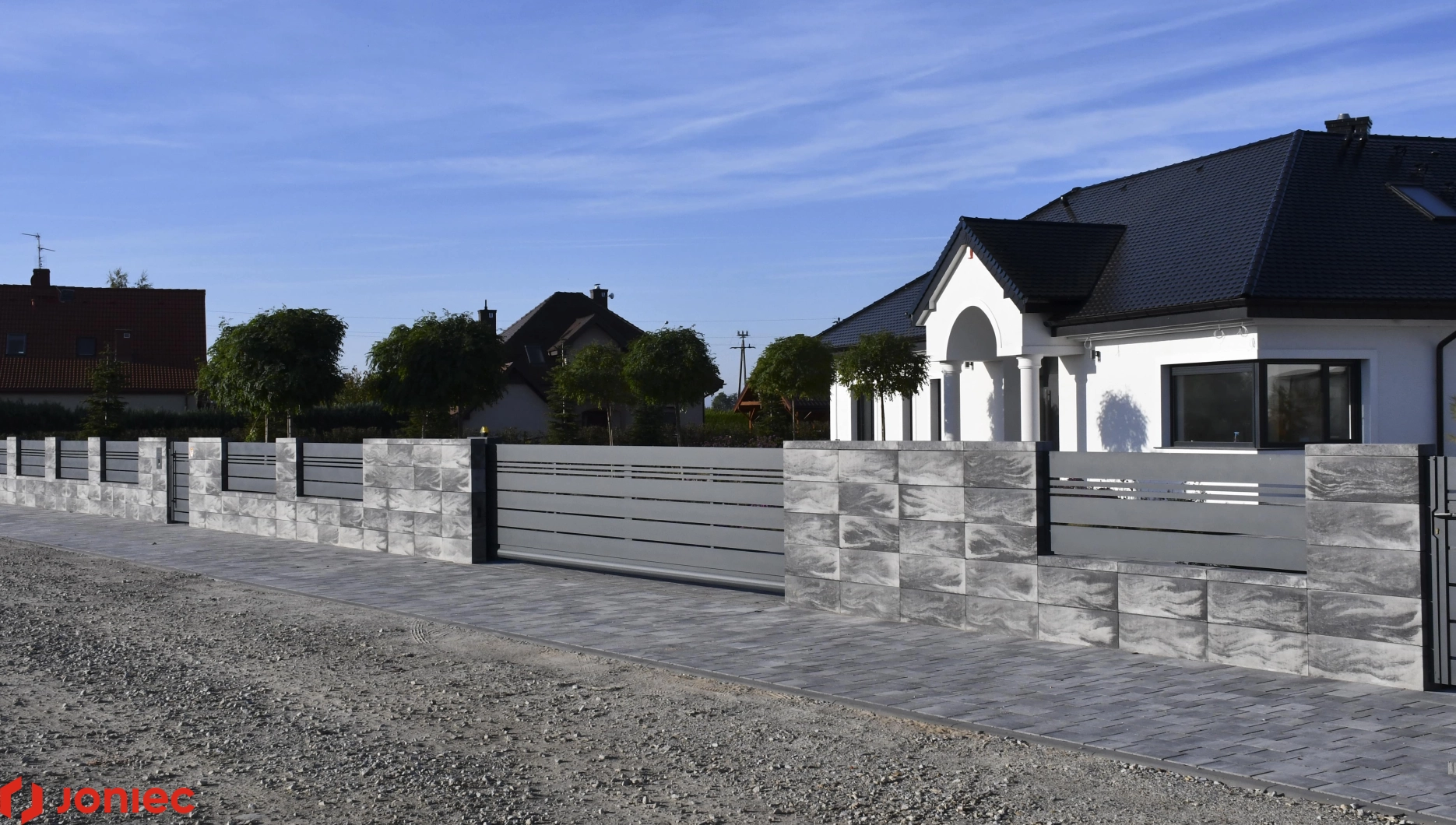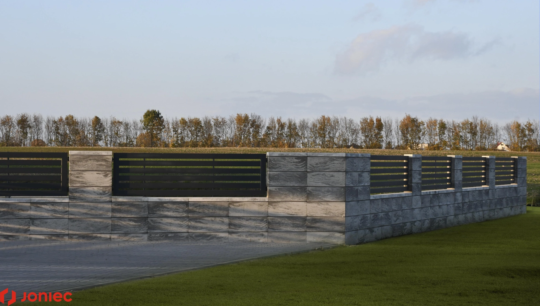 Marzy Ci się eleganckie ogrodzenie betonowe w Zachodniopomorskiem? Zdecyduj się na bloczki modułowe marki JONIEC® z linii ROMA Mega w kolorze galena – podobnie jak jeden z naszych klientów z tego regionu. To sprawdzony wybór, który idealnie pasuje do nowoczesnej architektury i spełnia nawet wygórowane wymagania. Ogrodzenie betonowe z bloczków modułowych tego typu daje swobodę wznoszenia konstrukcji o różnych kształtach wysokościach. Duże wymiary bloczków sprawiają natomiast, że budowa jest szybka i prosta – nawet na dużych działkach. Możesz je stosować solo lub uzupełniać o metalowe przęsła, tak jak w powyższej realizacji.