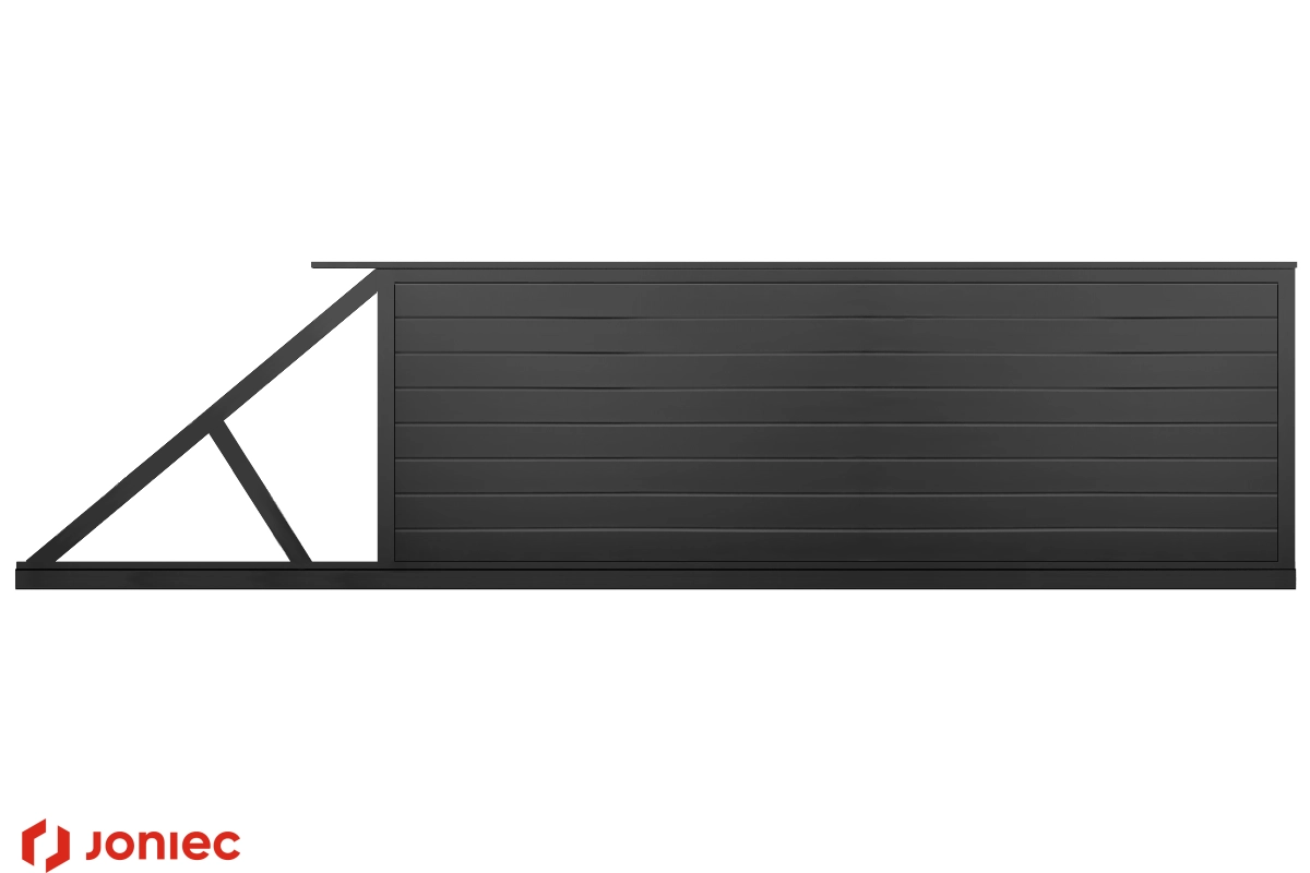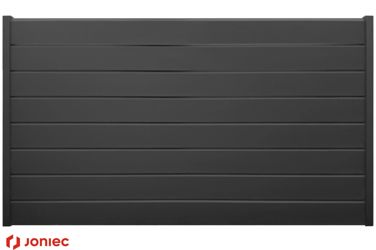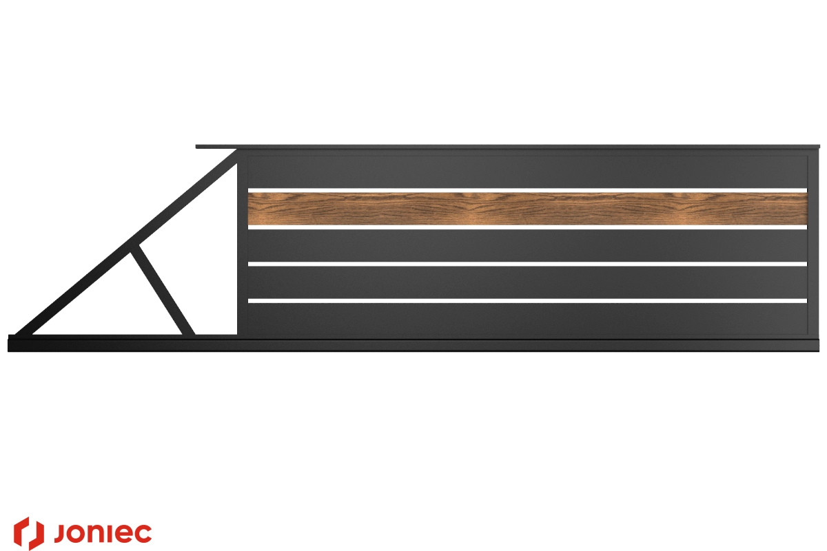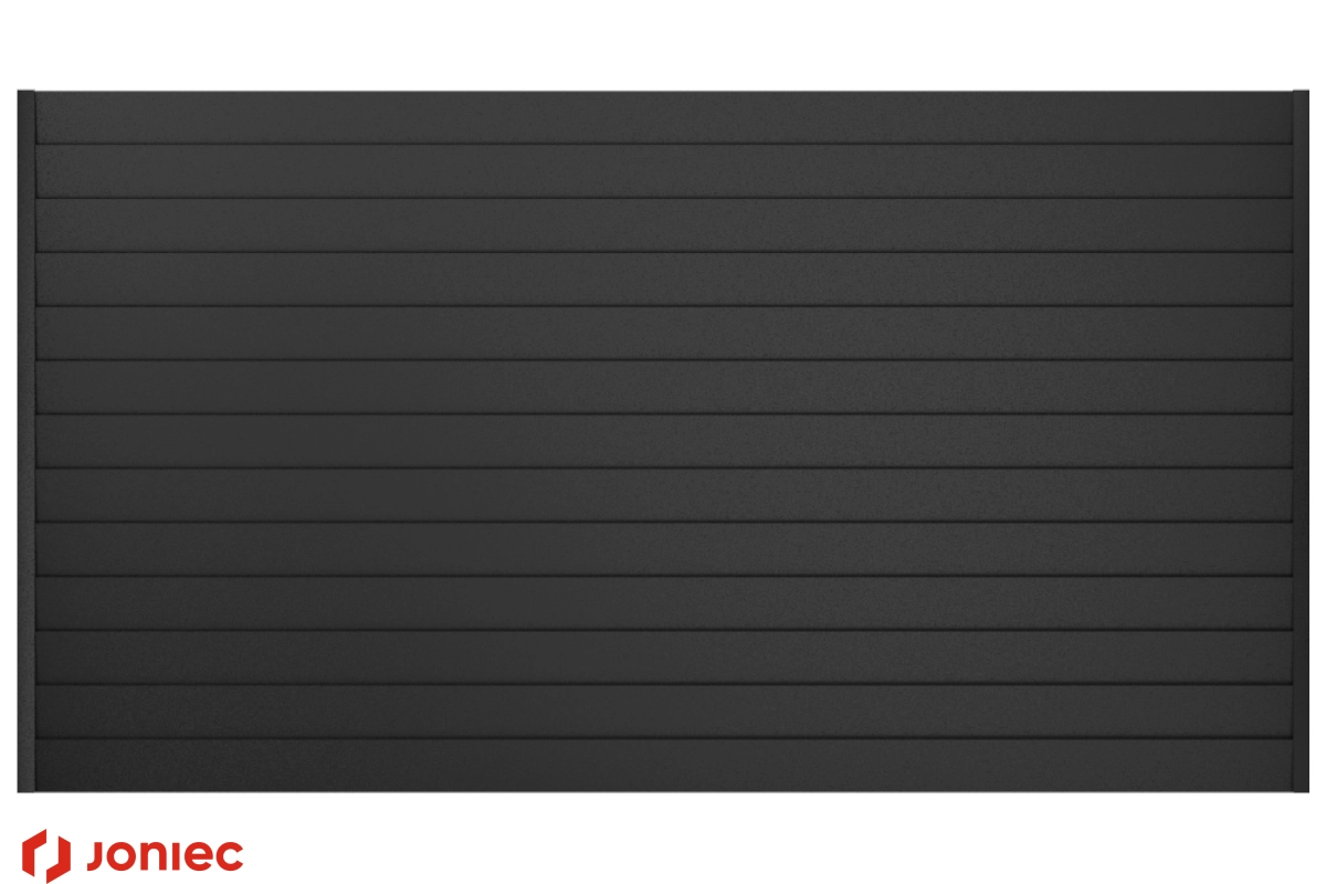 Profile 143 x 20 mm o przekroju równoległoboku ułożone poziomo. Ścięta górna krawędź profili pozwala na imitację efektu żaluzji nieprzeziernej.