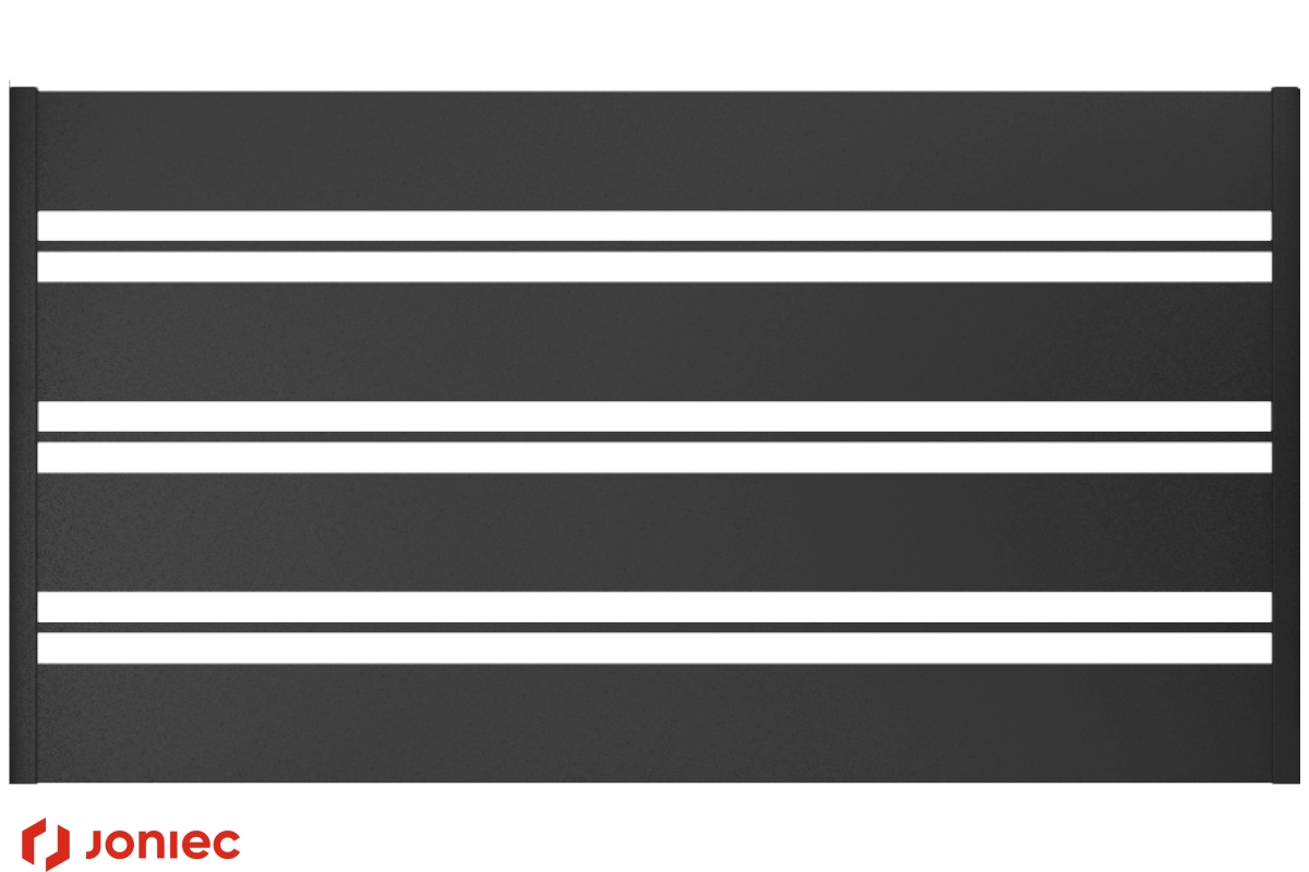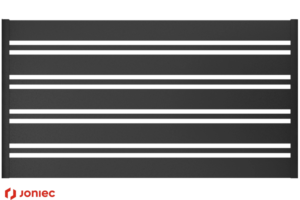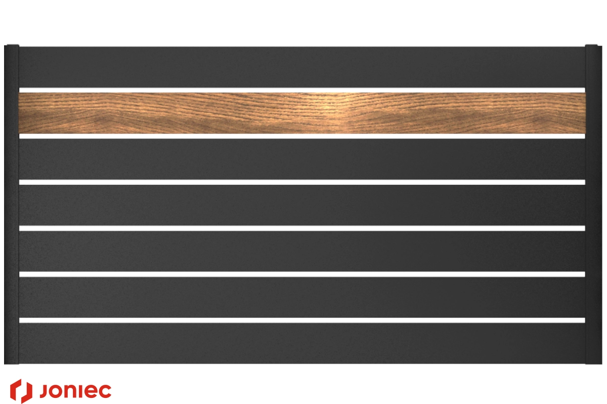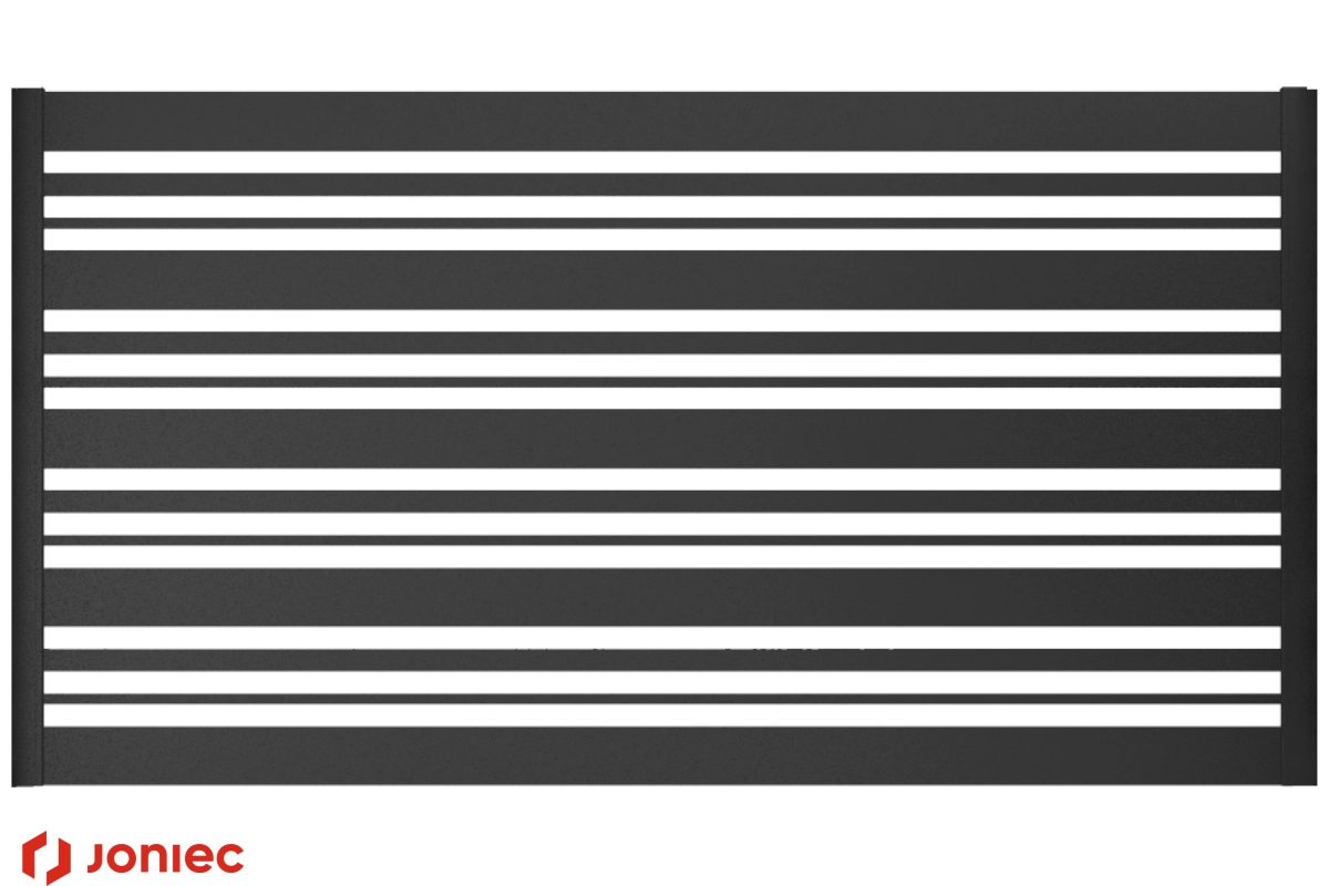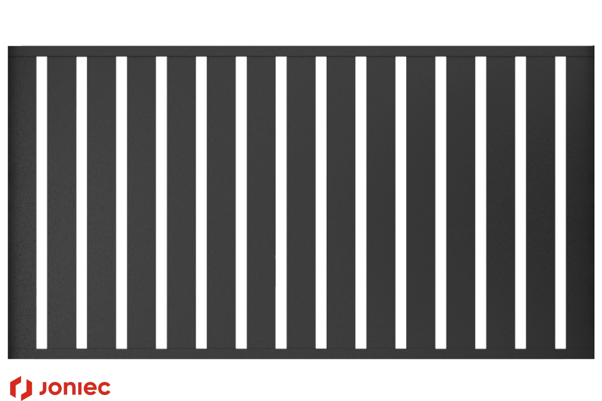 Profile 150 x 20 mm ułożone poziomo. Przerwy pomiędzy profilami dobierane indywidualnie z zakresu od 10 do 80 mm. Istnieje możliwość zwiększenia liczby wstawek za dodatkową dopłatą. Dostępne wzory wstawek zamieszczone w opisie
