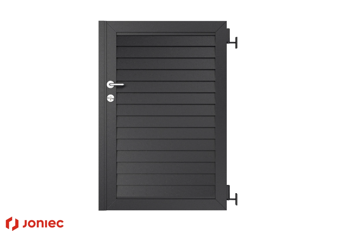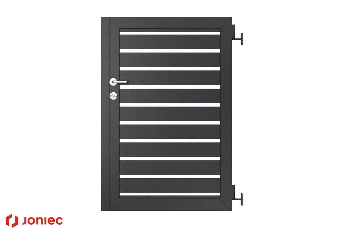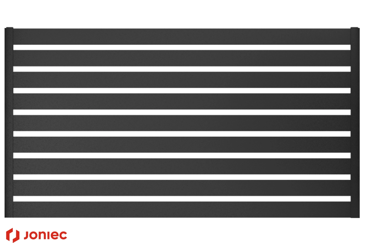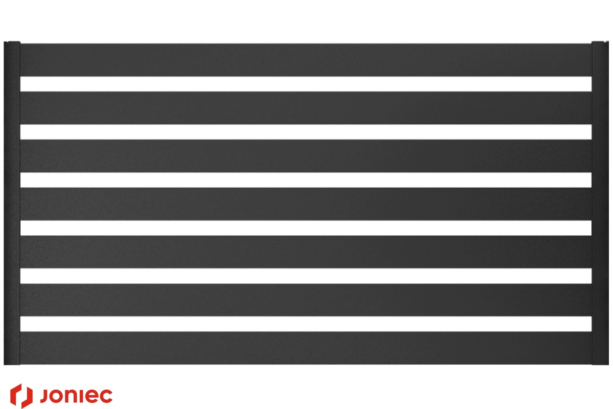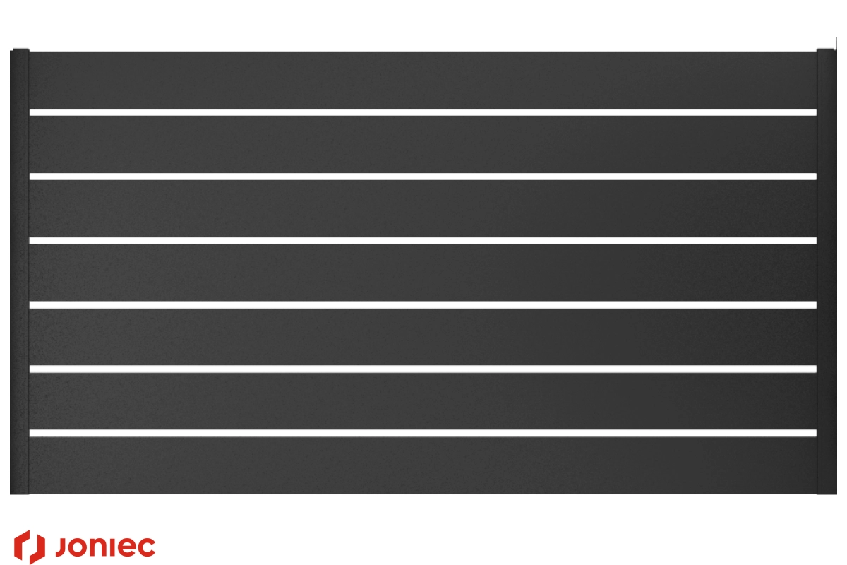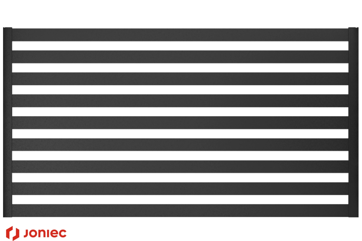 Profile 150 x 20 mm oraz 40 x 20 mm ułożone poziomo naprzemiennie. Przerwy pomiędzy profilami dobierane indywidualnie z zakresu od 10 do 80 mm.