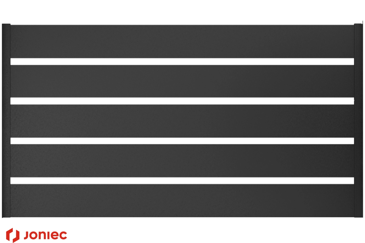 Profile 100 x 20 mm ułożone poziomo. Przerwy pomiędzy profilami dobierane indywidualnie z zakresu od 10 do 80 mm.