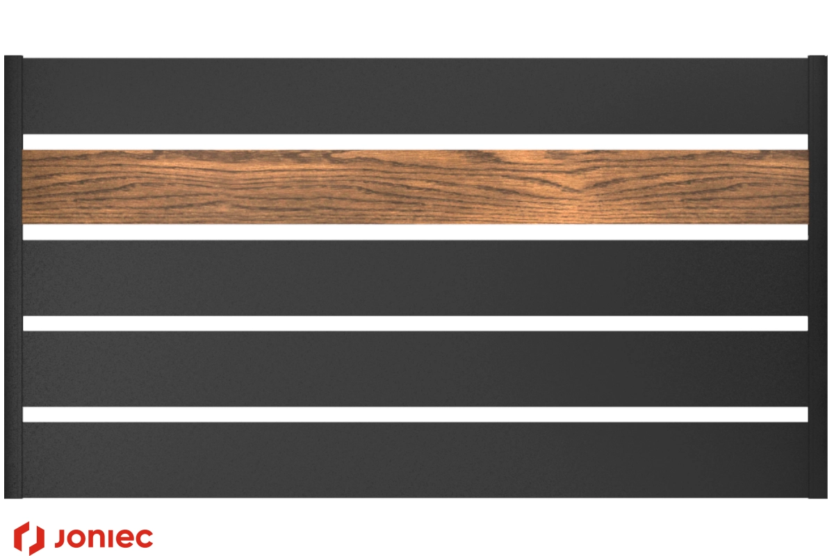 Profile 200 x 20 mm ułożone poziomo. Przerwy pomiędzy profilami dobierane indywidualnie z zakresu od 10 do 80 mm. Istnieje możliwość zwiększenia liczby wstawek za dodatkową dopłatą. Dostępne wzory wstawek zamieszczone w opisie