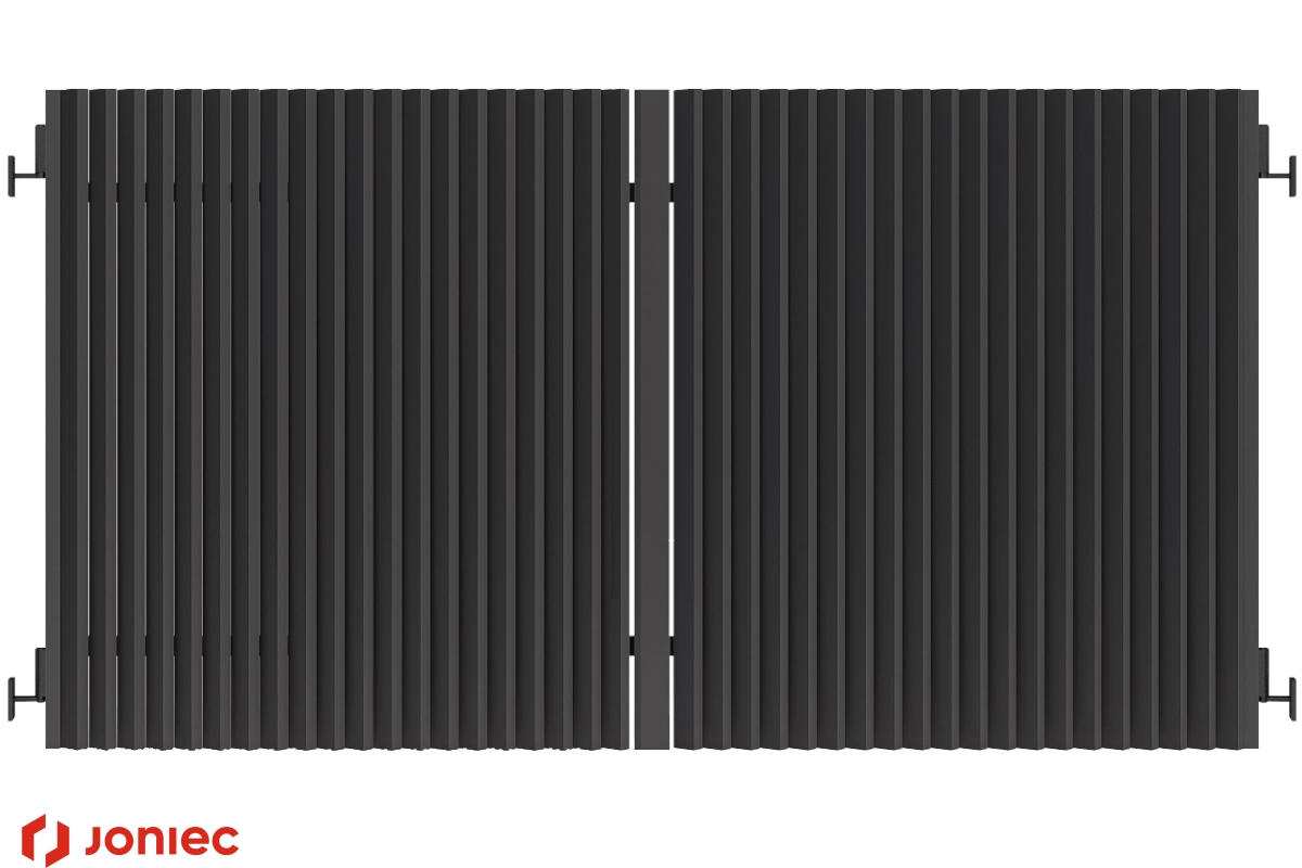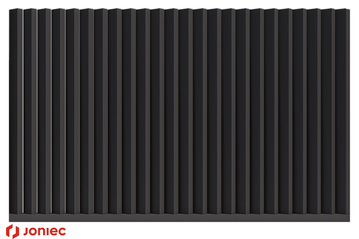 Profile 100 x 20 mm ułożone pionowo. Przerwy pomiędzy profilami dobierane indywidualnie z zakresu od 10 do 80 mm.
