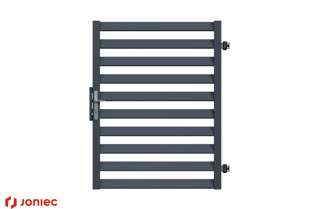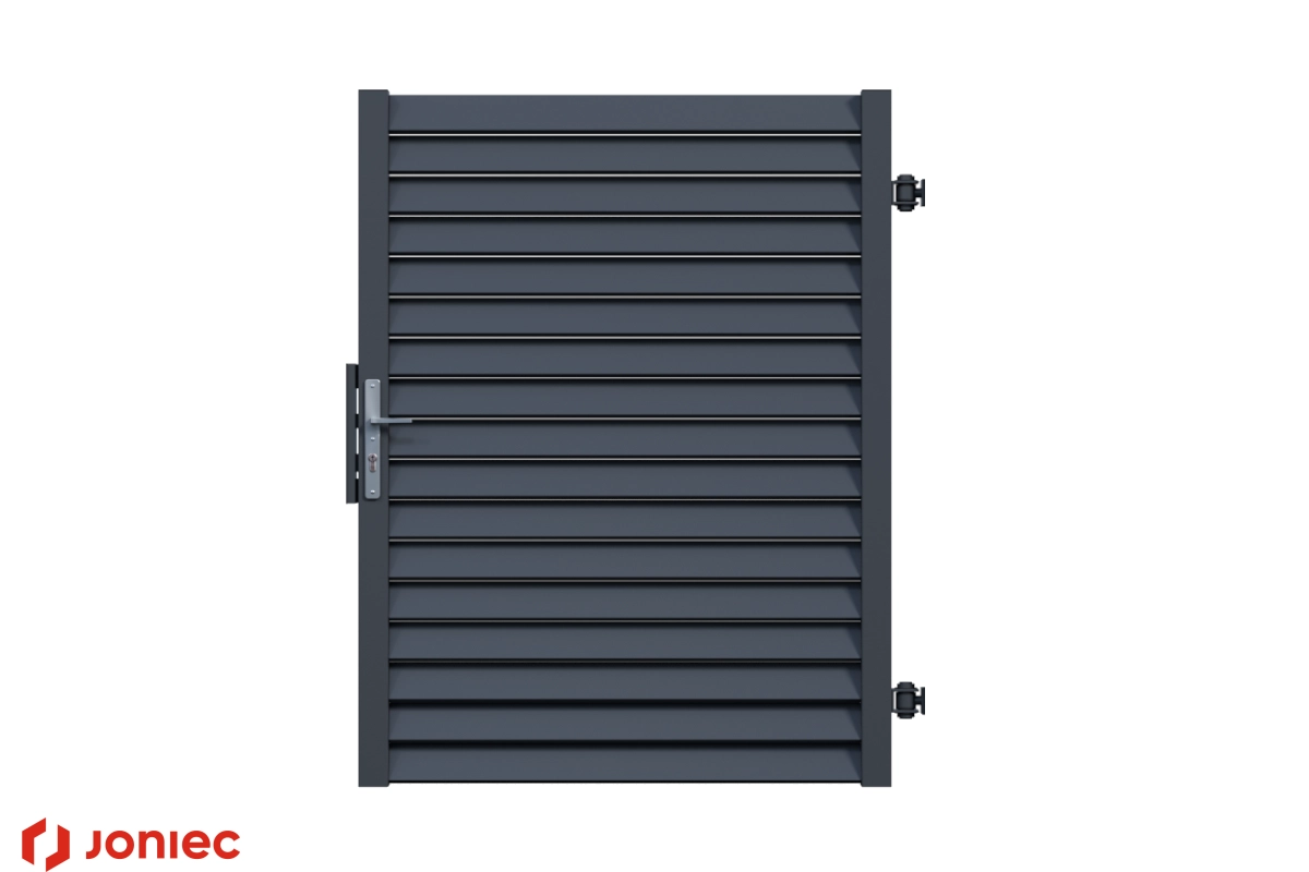 Profile 80x20 mm ułożone pod kątem tworzące żaluzję nieprzezierną.