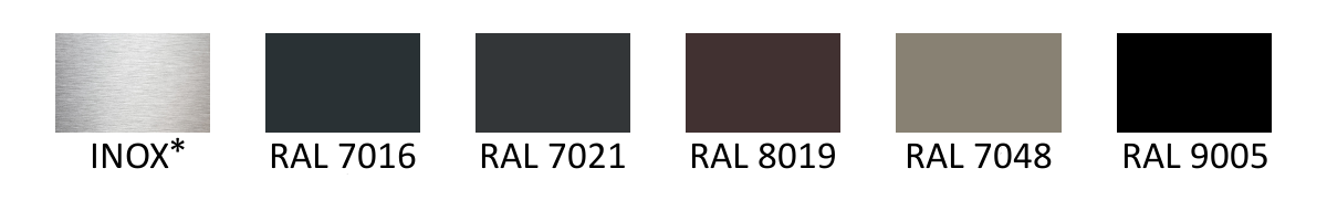 Szeroka gama kolorystyczna serii zawierająca kolory takie jak: INOX (stal nierdzewna szczotkowana), RAL 7016 (antracyt), RAL 7021 (grafit), RAL 8019 (ciemny brąz), RAL 7048 (perłowy) oraz RAL 9005 (czarny) umożliwia na znalezienie idealnego dopasowania dla każdego systemu ogrodzeniowego.